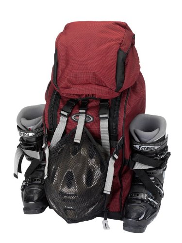 TEAM PACK - SKI BOOT BAG Ski Boot Bag - TEAM PACK...UNIQUE DESIGN!!!! DESIGNED BY SKIERS - GREAT DESIGN! ? Size: 12" x 10" x 21" ? Oversized Daypack with EASY TO USE, OUTSIDE BOOT HOLDERS ? Adjustable Top Lid w/multiple pockets ? MP3 Player pocket ? Convenient, Comfortable PVC carrying handle on top of bag ? Convenient Mesh Flap to Secure your Helmet Fully padded BACKPACK STRAPS THIS IS AN AWESOME BAG! UNIQUE DESIGN...FIRST OF ITS KIND ON THE MARKET! BE ONE OF THE FIRST TO SHOW OFF YOUR GEAR! YOUR FRIENDS WILL BE ASKING WHERE THEY CAN GET ONE!!! BOOTS and HELMET NOT INCLUDED!