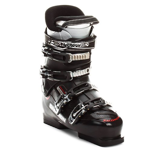 Salomon Mission MG Ski Boots 2012 - If you are looking for a good beginner boot with out a tall price tag the Salomon Mission MG should be on the top of your list. The 55 flex is soft and easy to bend, so your skills and technique will be improving in no time. The 25mm power strap acts like a fifth buckle to help give you more rebound as you start to work your way up to the blues. The Mission MG has a Tool Free Catch Adjustment in the cuff for added comfort, and will accommodate all calf sizes, big or small. Salomon's X Fit Fusion Comfort Liner is soft and cushy, to keep your feet comfortable and warm so you can be out on the slopes all day and night. At 104mm wide in the forefoot the Mission MG is perfect for even the widest of feet. The Salomon Mission MG is a great true beginner boot for all leg shapes and medium to wide feet. Gape it up today. Features: Great Beginner Boot. Warranty: One Year, Used: No, Skill Range: Beginner - Intermediate, Model Year: 2012, Product ID: 235416, Category: Downhill, Buckle Material: Plastic and Wire, Buckle Count: 4, Flex Adjustment: No, Forefoot Width: 104mm, Sidecountry: No, Freestyle: No, Number of Micro Buckles: 2 Micro/2 Vario, Prewired For Heat: No, Ski/Walk: No, Race: No, Flex: Soft, Special Features: Tool Free Catch Adjustment, Width: Wide (104-106mm), Special Features: Wide Cushy Fit, Gender: Mens, Cuff Alignment: None, Actual Flex: 55